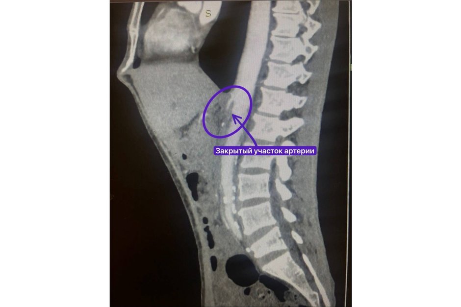 17 сентября пациент обратился в РКБ, где врачи сначала заподозрили панкреатит. Однако дальнейшее обследование показало, что причиной недомогания является серьезное нарушение кровоснабжения кишечника. Из-за атеросклероза бляшки практически полностью перекрыли верхнюю брыжеечную артерию.