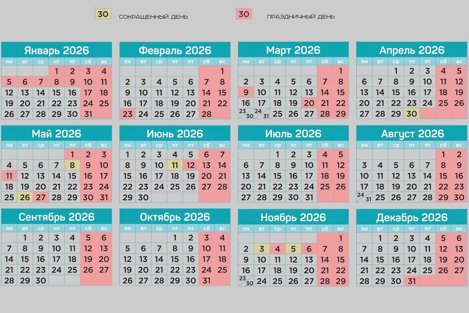 В Трудовом кодексе России прописано 14 праздничных дней в течение года, которые, если выпадают на выходные, переносятся на будни. Таким образом, общий баланс труда и отдыха в годовом измерении остается стабильным: в 2025 году, как и в 2026 году, установлено 118 выходных и праздничных дней и 247 рабочих дней.