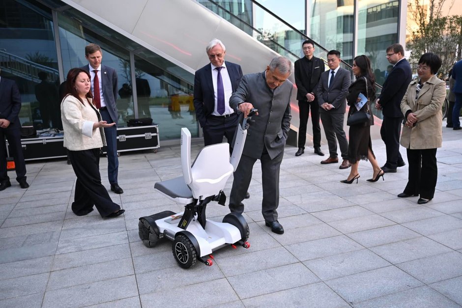 Особое внимание в ходе визита было уделено решениям для маломобильных граждан. Главе республики продемонстрировали современные электрические коляски, движение которых обеспечивается за счет электропривода, а не физических усилий пользователя.