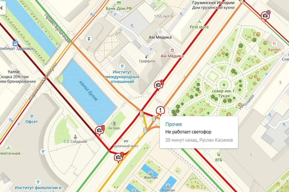 По информации корреспондента «Реального времени» и данным картографических сервисов, наиболее сложная ситуация с движением наблюдается на Право-Булачной улице.