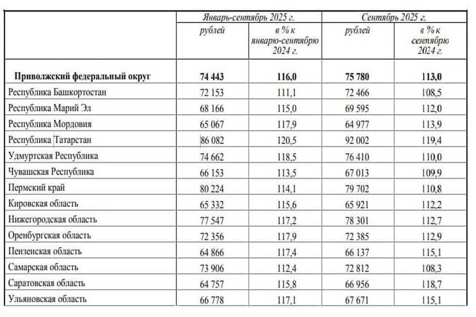 За девять месяцев 2025 года она составила более 86 тыс. рублей, в сентябре — более 92 тыс. рублей
