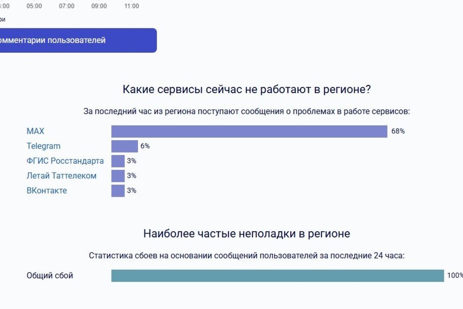 Всего за час от пользователей по всей России было зарегистрировано более 800 жалоб.