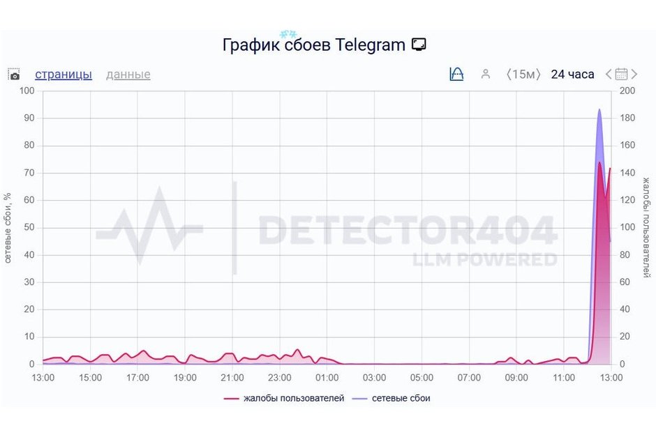Согласно данным мониторинговых сервисов, за один час было зафиксировано 445 жалоб на работу сервиса, а общее число обращений за день достигло 739. Основные типы проблем — сбои мобильного приложения и веб‑версии сервиса.