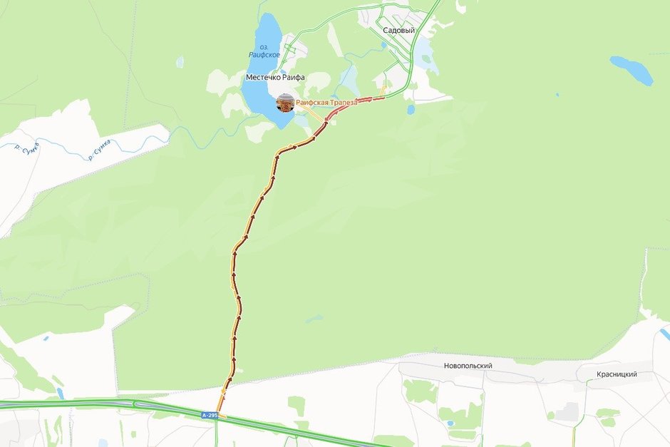 По данным «Яндекс.Карты», пробка начинается со съезда с трассы А-295. Затрудненное движение наблюдается в обе стороны — на въезд и выезд от Раифского монастыря.
