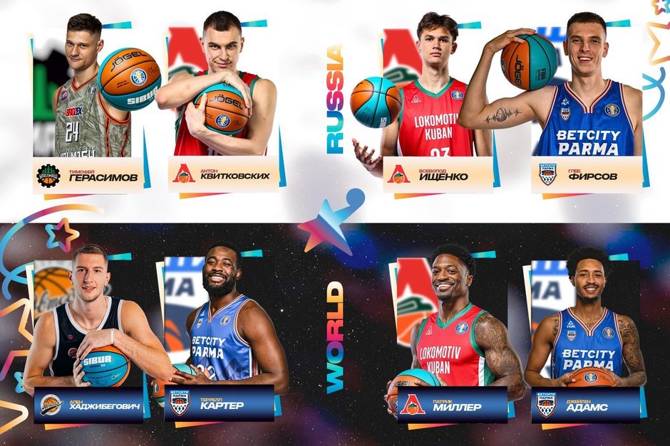 В переднюю линию команды «Звезды России» зрители выбрали Антона Квитковских («Локомотив-Кубань») и Глеба Фирсова («Бетсити-Парма»), а в заднюю — Тимофея Герасимова («Уралмаш») и Всеволода Ищенко («Локомотив-Кубань»).