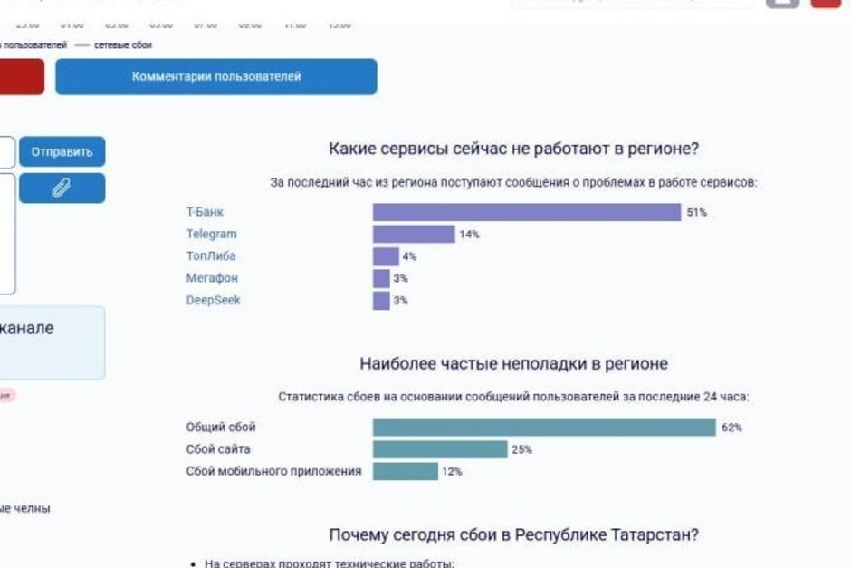 Согласно статистике, у банка наблюдается общий сбой (и сайта, и приложения). Ранее татарстанцы массово жаловались на «ВКонтакте» — соцсеть не работала в регионе.