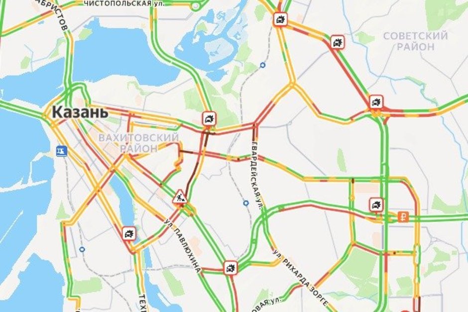 Больше всего аварий и заторов фиксируется в Вахитовском и Советском районах