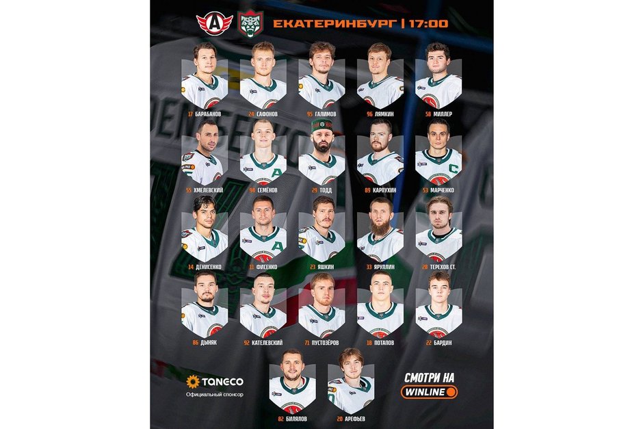 Как сообщили в пресс‑службе клуба, состав команды останется тем же, что и в предыдущей встрече чемпионата — против тольяттинской «Лады». В ворота «Ак Барса» встанет Тимур Билялов. Его сменщиком на матч заявлен Максим Арефьев. В остальных линиях состава, по сравнению с прошлой игрой, изменений не произошло.