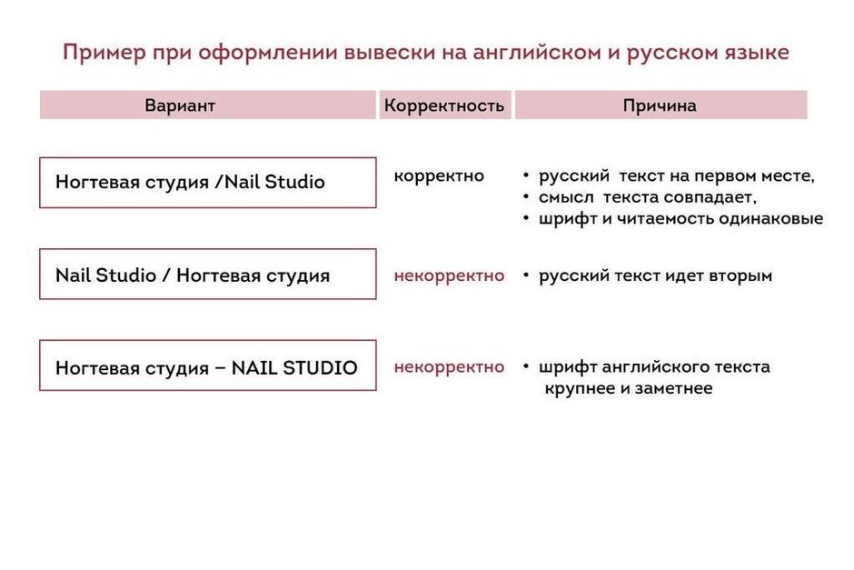 Бизнес может использовать и другие языки — например, языки народов России или региональные языки, но русский язык должен присутствовать обязательно.