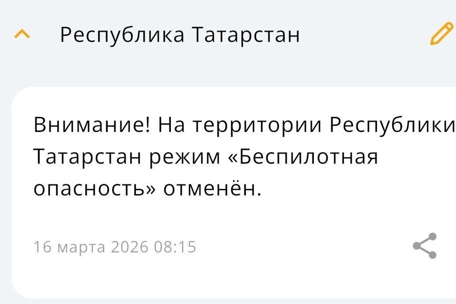 В Татарстане спустя 5,5 часа отменили режим беспилотной опасности. Об этом сообщили в приложение МЧС.