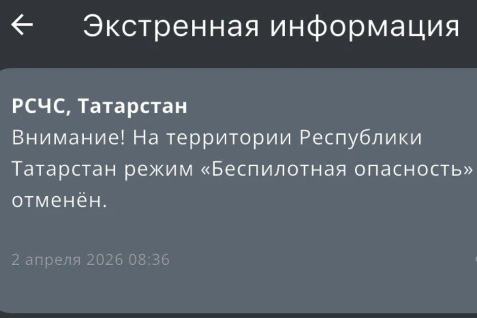В Татарстане отменили режим «Беспилотная опасность». Об этом сообщили в МЧС РТ.