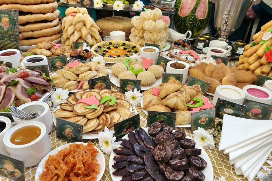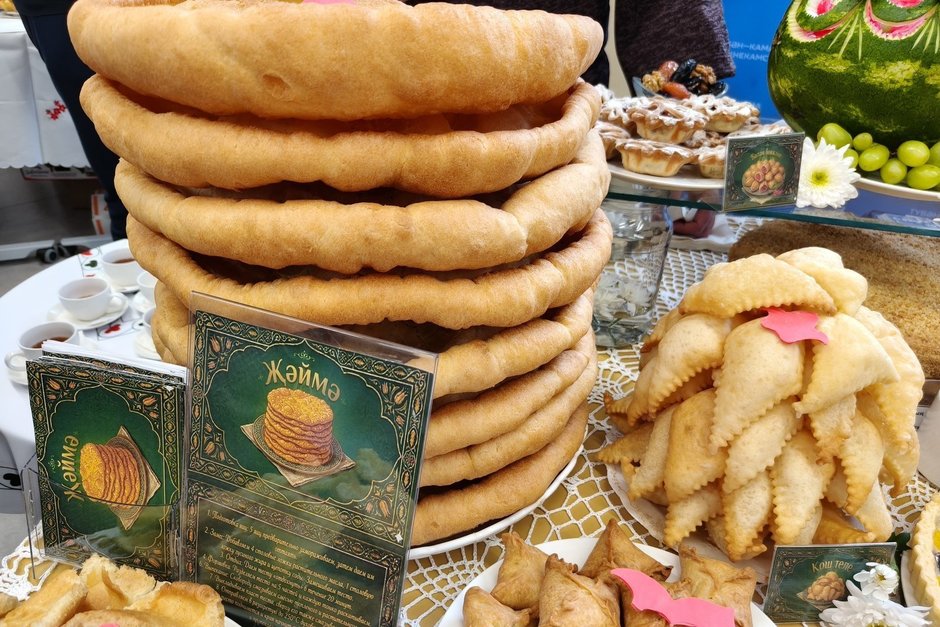 В рамках конкурса семья Хасанзяновых также накрыла праздничный стол, который поразил разнообразием блюд. На суд жюри были представлены коймак, губадия, казылык, тутырма, дуртпочмак и, конечно же, главное семейное блюдо — жэйма.