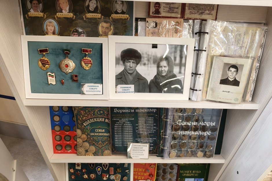— Целый стенд здесь посвящен истории семьи мужа. К сожалению, его мама недавно ушла из жизни. Она была прекрасной рукодельницей и бережно хранила всю семейную коллекцию реликвий. Перед смертью все, что она имела, передала нашей семье. В этой коллекции собрано много старинных монет, включая экземпляры советского периода и даже монеты XVIII века, — отметила Файруза Хасанзянова.