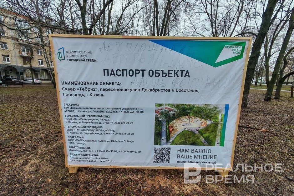 На баннере, установленном в сквере «Тебриз», изображен проект благоустройства без двух существующих фонтанов, что вызвало недовольство местных жителей