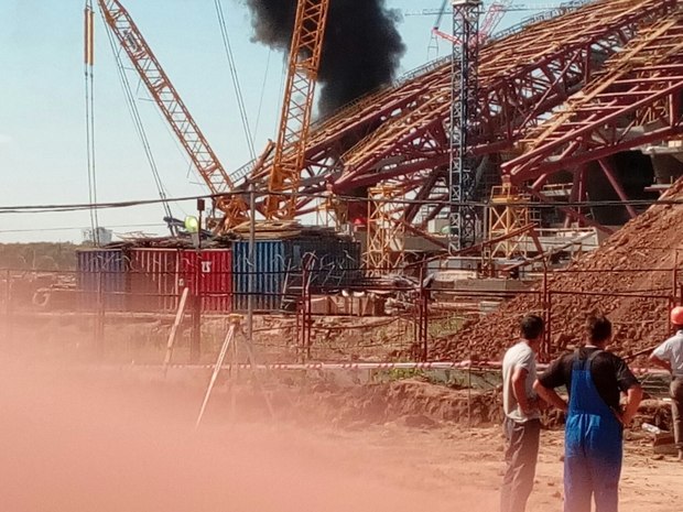 На строительной площадке стадиона в Самаре к чемпионату мира по футболу 2018 года виден столб дыма. Об этом сообщается в блогах на сайте sports.ru