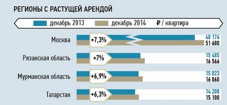 Цены на аренду жилья в Татарстане за 2014 год выросли на 6,3%, достигнув 15,1 тысяч рублей. При этом в большинстве регионов России цены снизились на 1% и более.