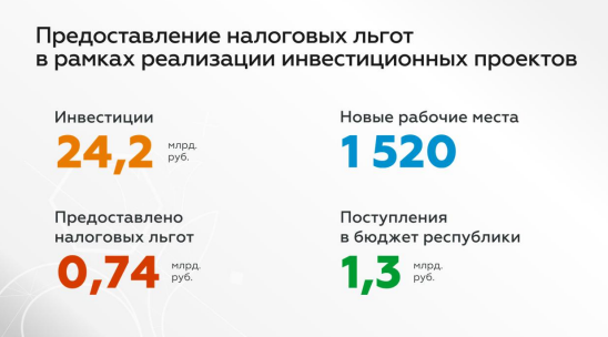 Глава минпромторга отметил, что в прошлом году в РТ реализовали 34 инвестпроекта с господдержкой. Они принесли бюджету 1,3 млрд рублей, что почти в два раза превышает объем предоставленных льгот.Как ранее сообщалось, в этом году предполагается открыть 8 новых производств в ОЭЗ «Алабуга».