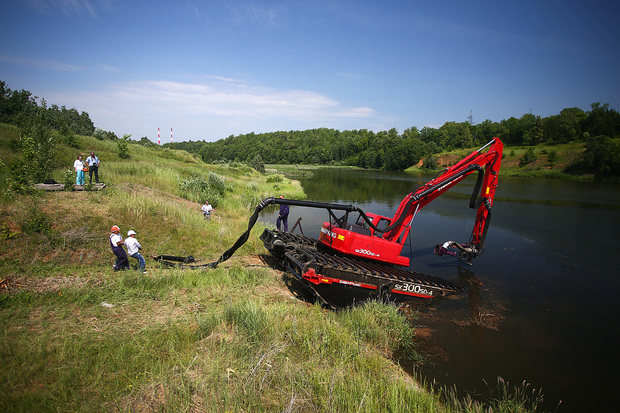 Первый пруд предстоит очистить от осадков за 1,5 года. К выполнению важной экологической задачи, предусмотренной 4-й корпоративной экологической программой, привлечена казанская фирма «Политол». Чистить буферные пруды на р. Тунгуча специалисты этой фирмы будут с помощью специальной машины голландского производства: экскаватор-амфибия будет выкачивать ил со дна водоема и заливать его в геотубы. Это мешки, выполненные из специального фильтрующего материала, в который помещается порядка 500 кубометров осадков. Через геотубы, как сквозь сито, вода будет стекать в пруд, а оставшийся осадок после обезвоживания будет размещен на шламонакопителях.
